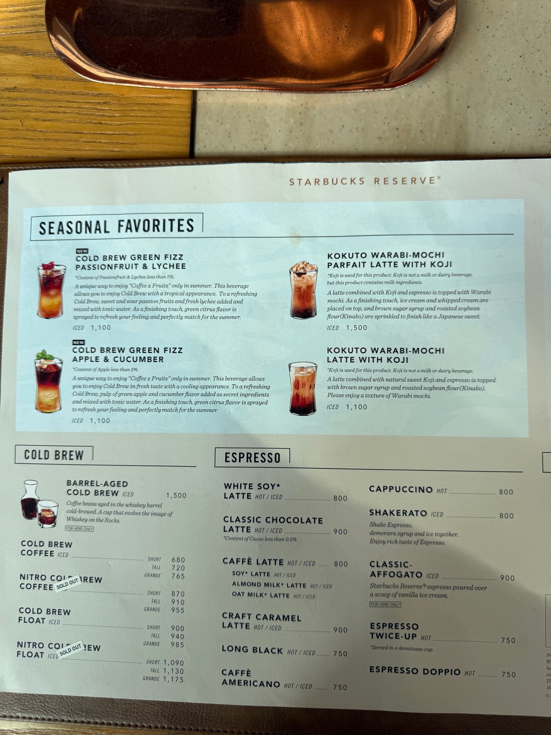 Starbucks Reserve Menu in Japan